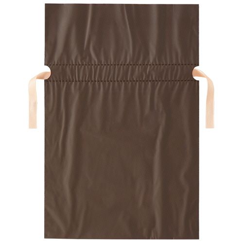 ●240×360mm、ブラウンのリボン付きギフトバッグ。●リボンを絞ると内側の袋が見えてツートンカラーになり高級感がアップします。