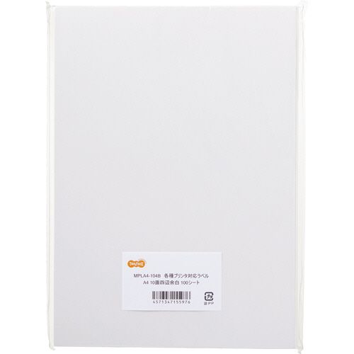 ●高白色タイプのA4・10面四辺余白、100シート入です。