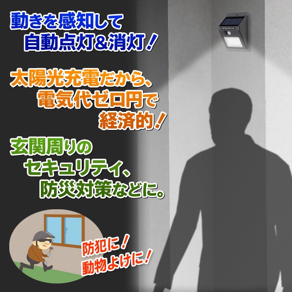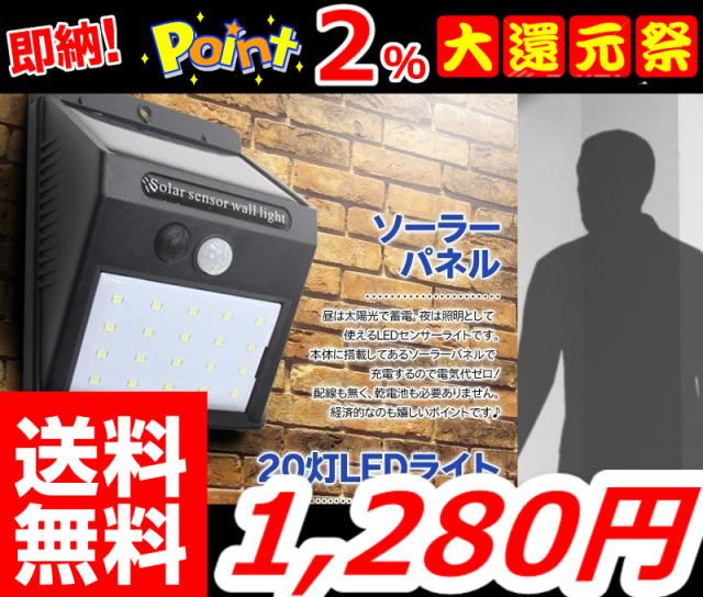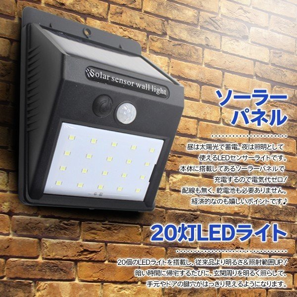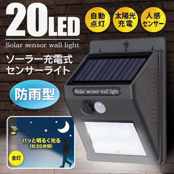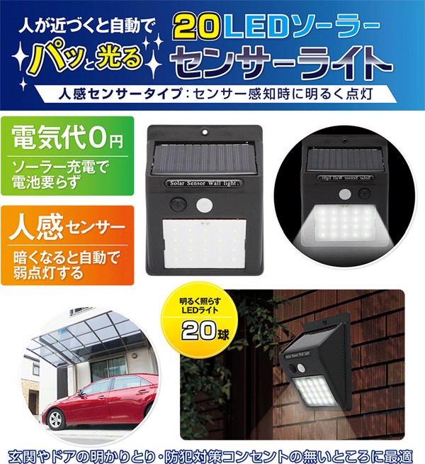 送料無料即納 【ソーラーセンサーポーチライト】 人感センサー 太陽光充電式 20灯LED 防雨型