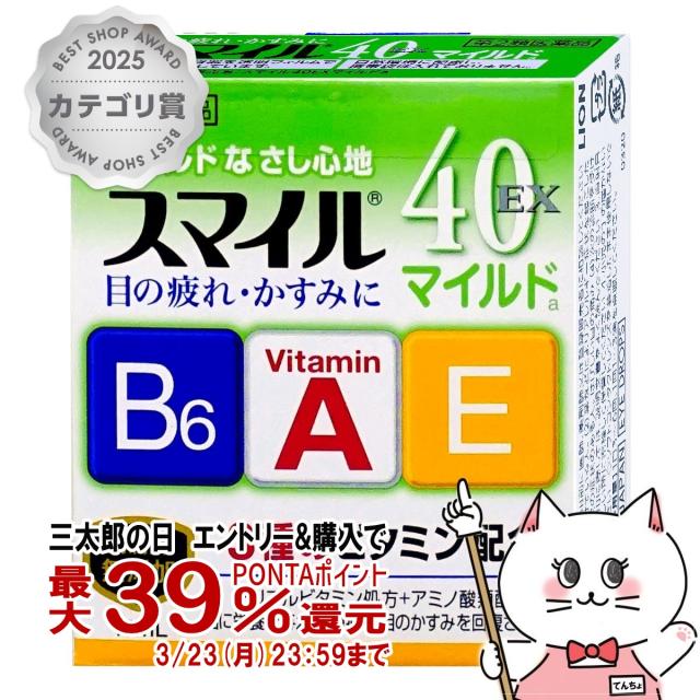 【三太郎の日 ポイント39%還元】【第2類医薬品】スマイル40EXマイルド 15ml[ライオン][目薬/目の疲れ/目のかすみ/充血/かゆみ][メール便発送OK](6043228)