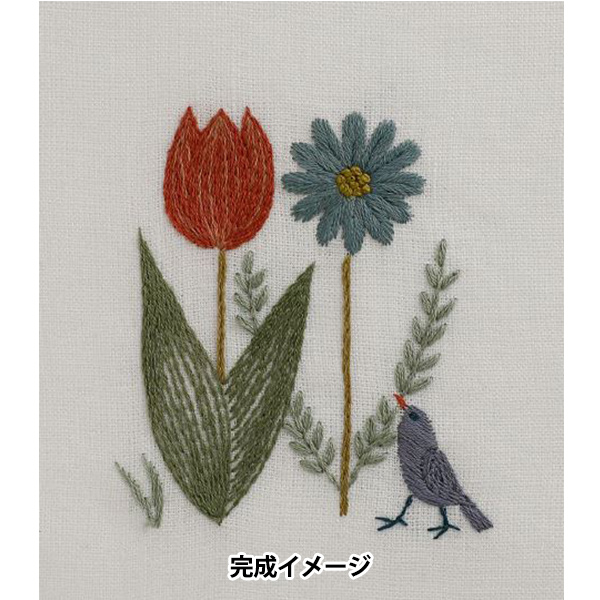 [刺繍 ししゅう 鳥 小鳥 グレー 花 チューリップ マーガレット]