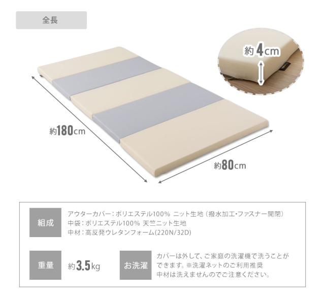 | サイズ | 全長:約180×80×4cm 折りたたみ時:約36×80×22cm |