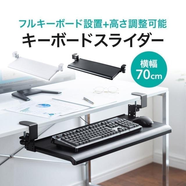 キーボードスライダー 幅70cm 高さ調整つき クランプ固定式 デスクに装着 キーボード マウス収納[100-KB008]