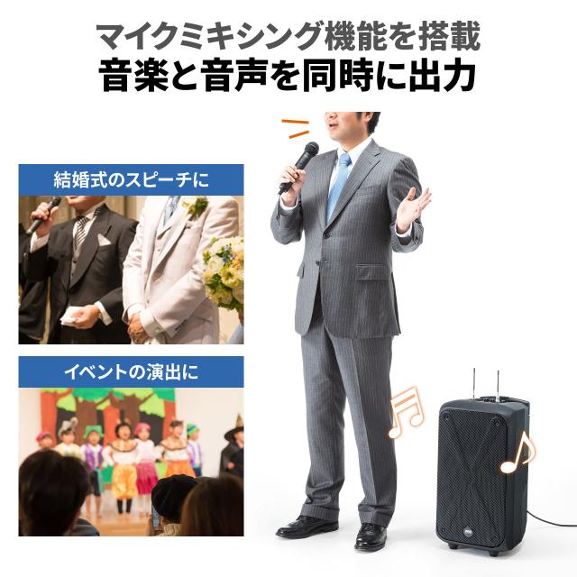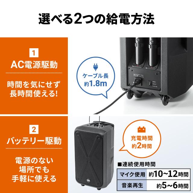 拡声器 200W出力 ワイヤレスマイク2本セット 会議 イベント 選挙 ポータブルPAシステム[400-SP093]