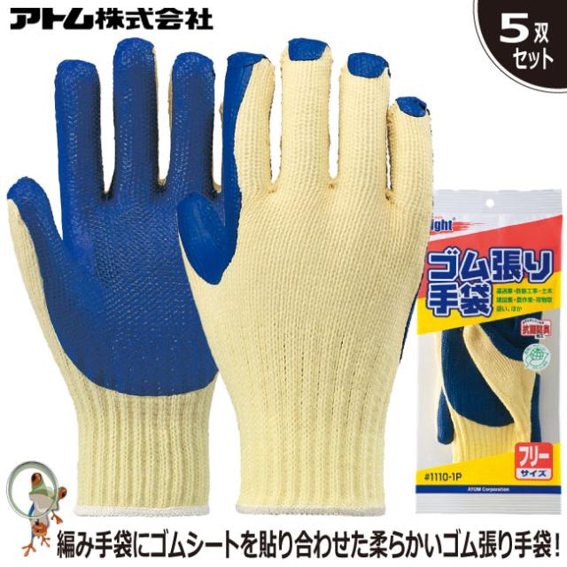 手袋 アトム ゴム張り 1110 業務用手袋 特価5双セット 天然ゴム 丈夫 耐久性 作業手袋