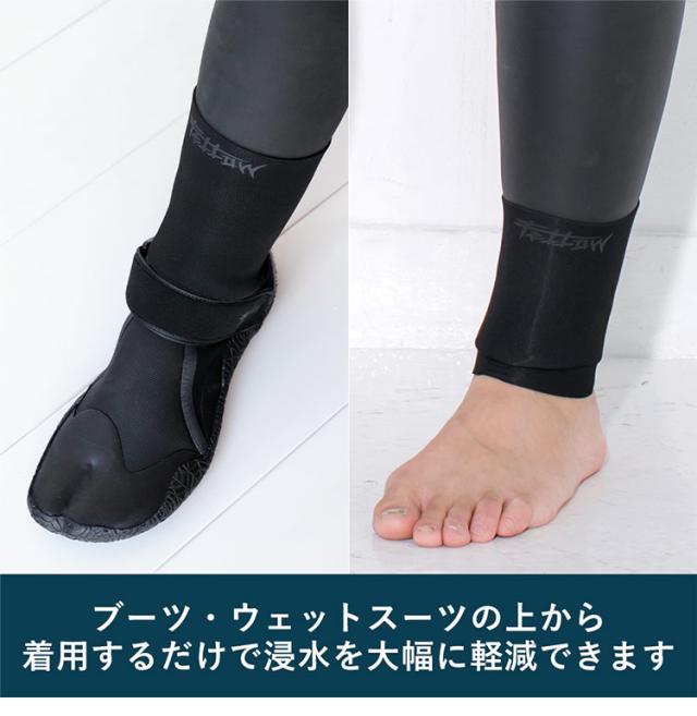 - 友人の勧めで購入。商品到着後暖かくなったので、あまり効果を実感する機会はなかったのですが、浸水+砂が入る予防になると思いました。