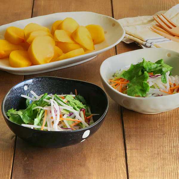 和食器 ボウル 水玉 三角4.5寸鉢 (ドットモノトーンシリーズ)おしゃれ 小鉢 中鉢 和の小鉢 煮物小鉢 サラダボウル 鍋取り鉢 煮物鉢 鉢 サラダボウル 副菜鉢 モダン 和モダン 和柄