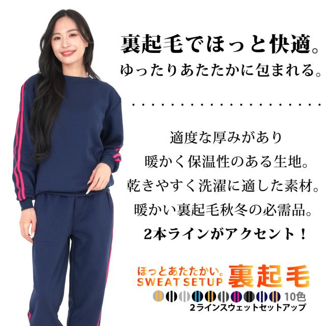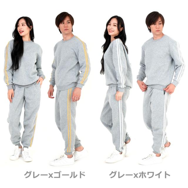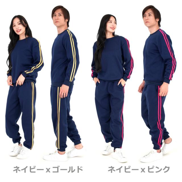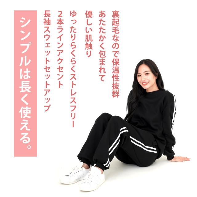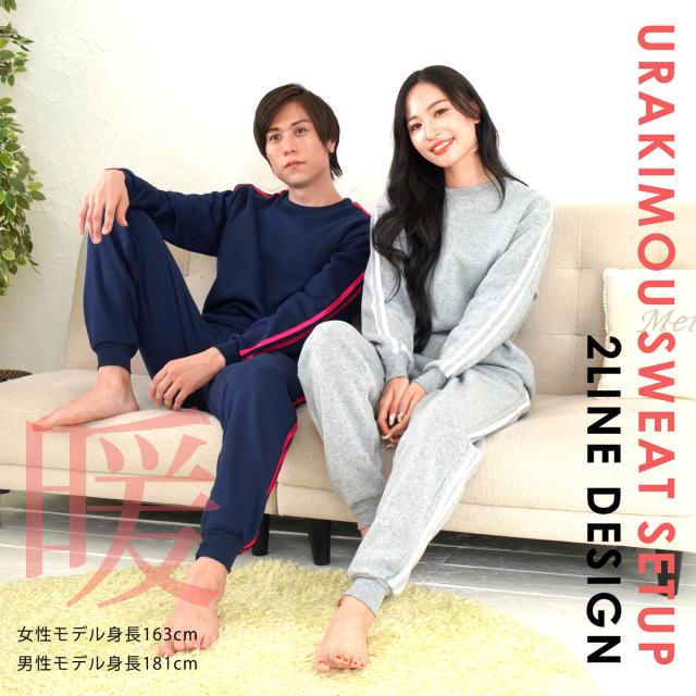 スウェット 上下 セット メンズ 裏起毛 レディース 兼用 2本ライン Mから3L 大きいサイズ【565】 部屋着 ルームウェア ねまき あったか スエット 防寒 冬