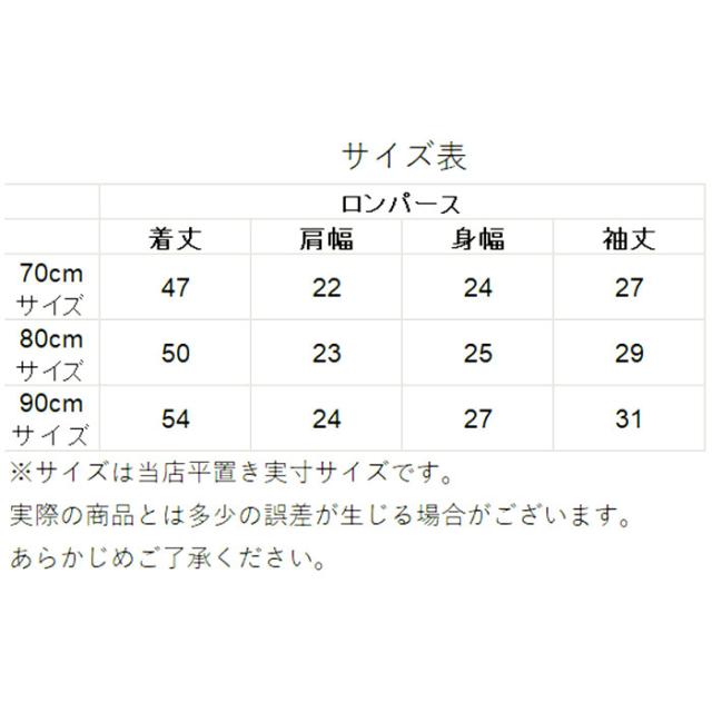 | サイズ | [ベビー] ・70cm ・80cm ・90cm ※サイズについての詳細は、サイズ表をご覧くださいませ。 |