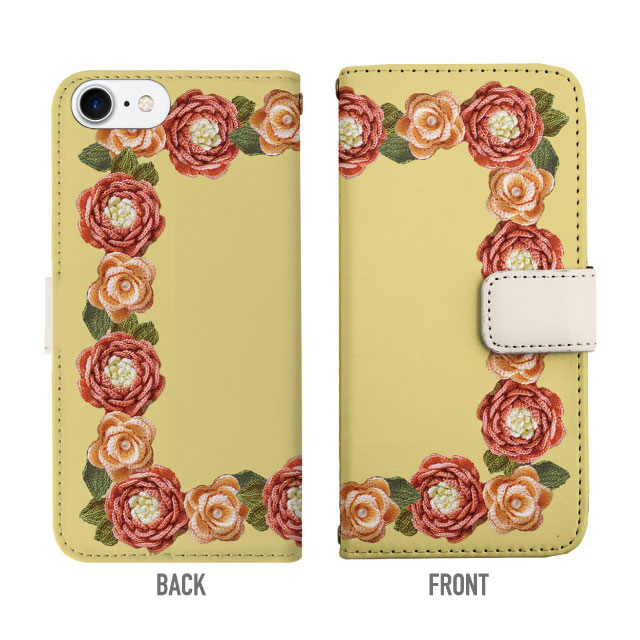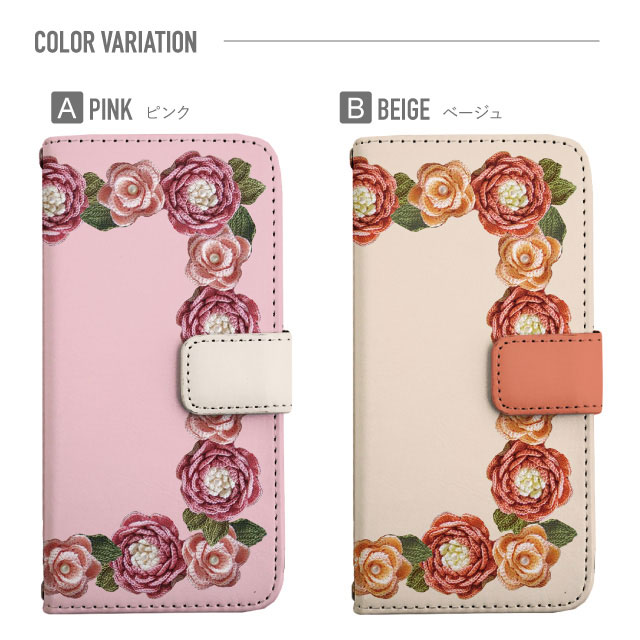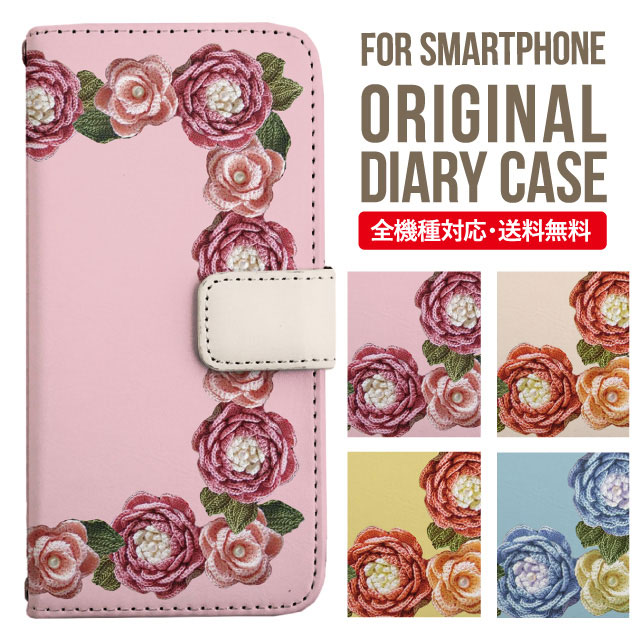 つまみ細工のデザインをプリントしたスマホケースになります。
