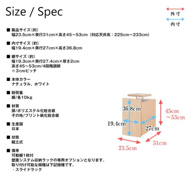 ・棚サイズ(約):幅19.3cm×奥行27.4cm×厚さ2cm 4段階調節、3cmピッチ