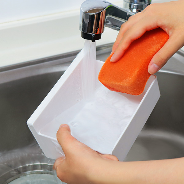 本体はプラスチック素材なので、スポンジでサッと丸洗いができてお手入れ簡単です。いつも清潔な状態で衛生的にお使いいただけます。