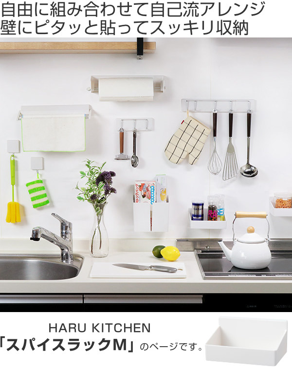 調味料ラック M 壁付け 吸着 貼ってはがせる スパイスラック プラスチック製 HARU ( 調味料スタンド 壁 キッチン キッチン収納 壁面収納 壁掛け 調味料置き 調味料収納 整理整頓 小物収納 小物ラック 小物入れ スパイススタンド )