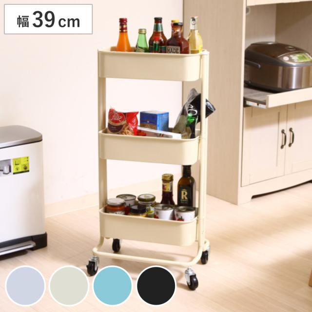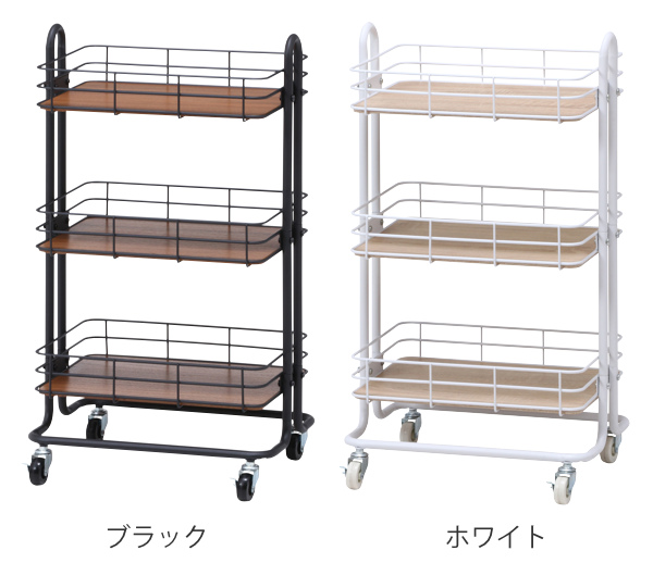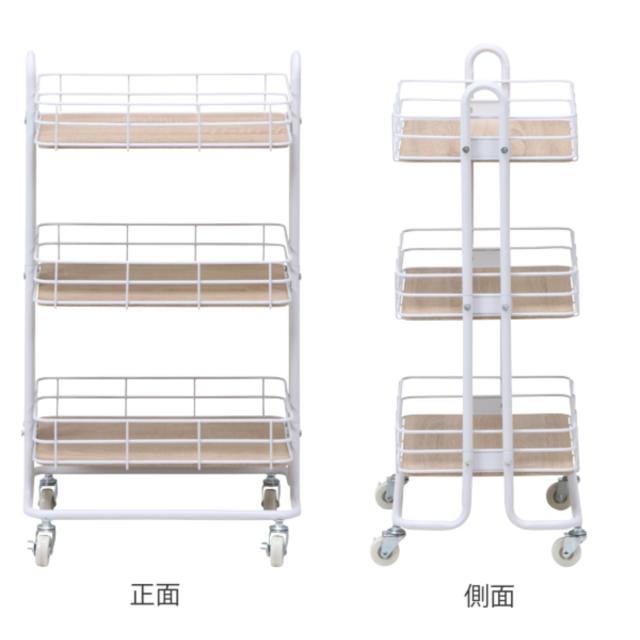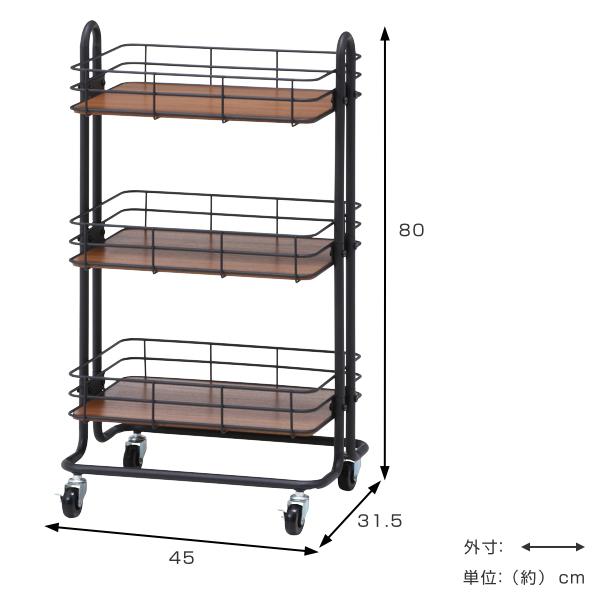 キッチンワゴン バスケット 3段 木棚板 スチールフレーム 幅45cm ( サイドワゴン キッチン 収納 ワゴン ラック キッチン収納 収納ラック スチールラック キッチンラック キャスター付き キッチン収納 キッチン すきま収納)