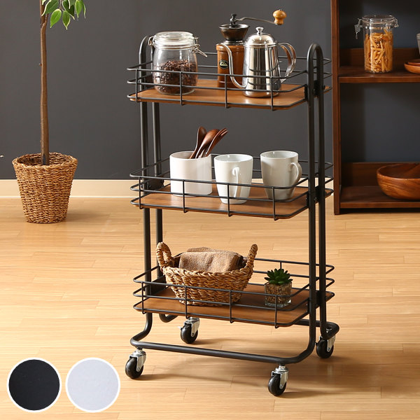 ●スチールフレームと木製の底板の組み合わせがおしゃれなキッチンワゴンです。