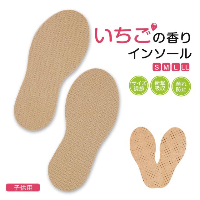 コロンブス 子供用 インソール 衝撃吸収 中敷き キッズ 靴のサイズ調整 いちごの香り クッション やわらか 蒸れにくい 通気性 パンチング加工 疲れにくい 痛くない インソール スニーカー 香り付き 男の子 女の子 小学生 ベージュ こどもクッションインソール