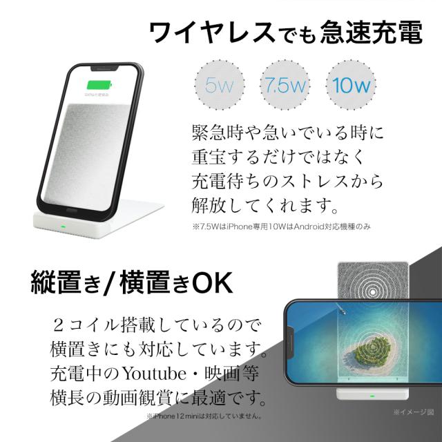 ※iOSのバージョンにより、7.5W充電にならない場合がございます。最新のバージョンにアップデートをすることにより改善されます。
