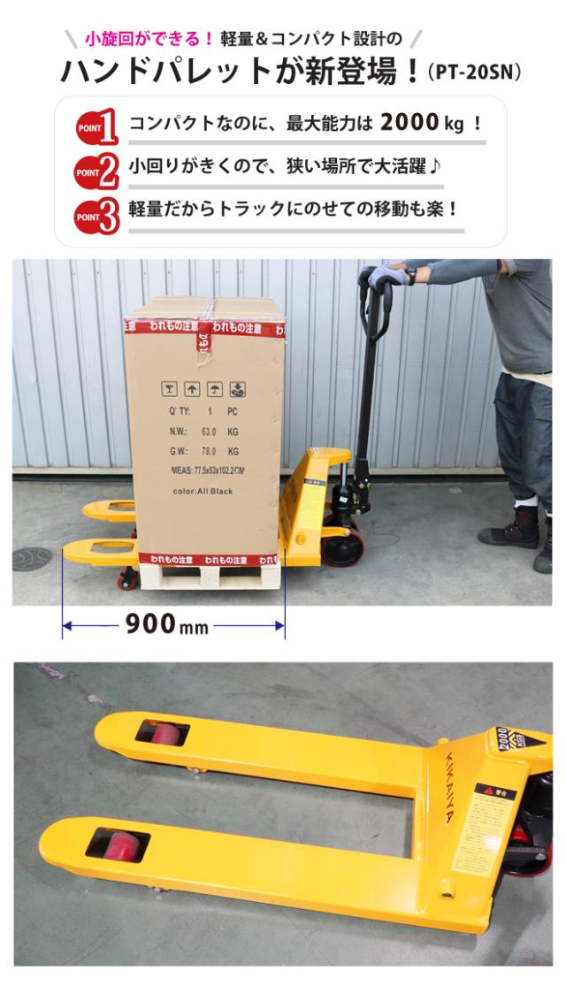 ハンドリフト 2000kg ショートタイプ 小旋回 軽量コンパクト フォーク長さ900mm 全幅520mm 高さ75mm パレットトラック KIKAIYA