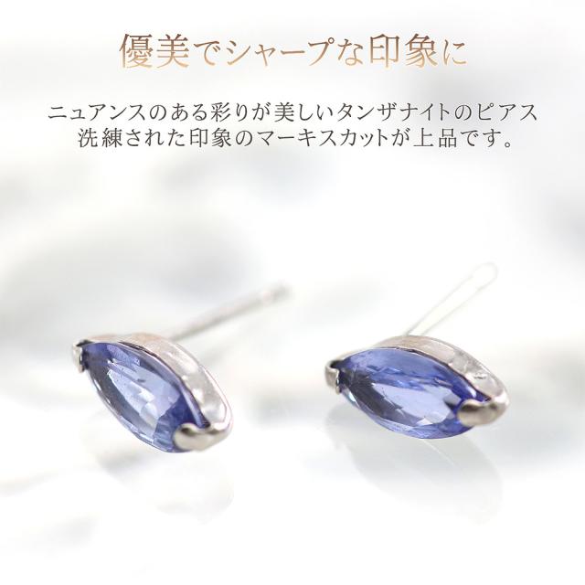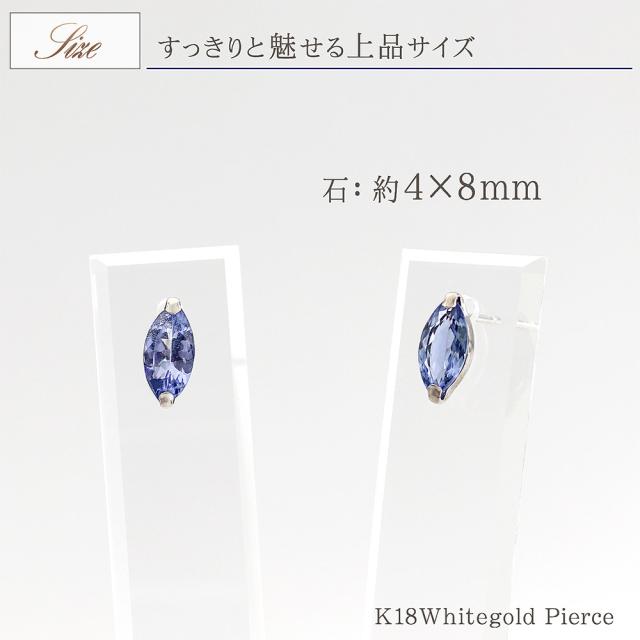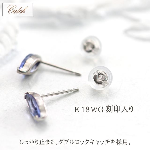 | 地金・素材 | ・タンザナイト(タンザニア産)トータル1ct マーキスカット(品質保証書付き) ・地金:K18WG(18金ホワイトゴールド) ・ダブルロック キャッチ ※刻印等は異なる場合がございます。 |
