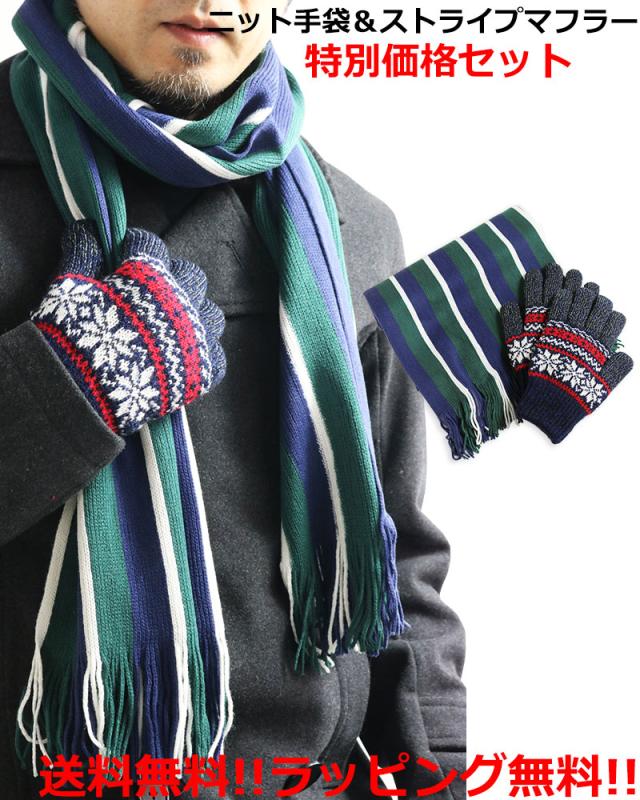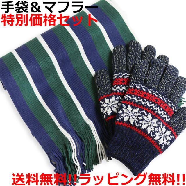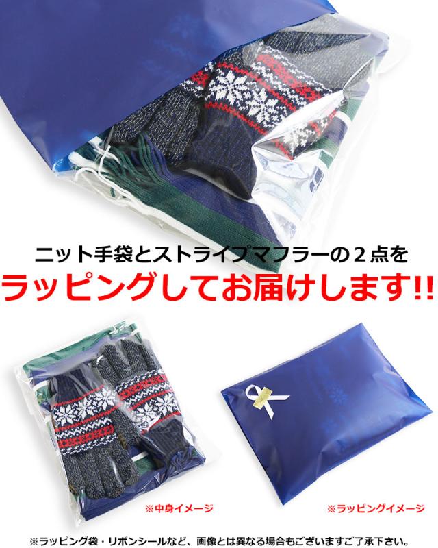 手袋 マフラー 2点 ギフトセット ラッピングセット ニット手袋 スマホ手袋 メンズ 福袋