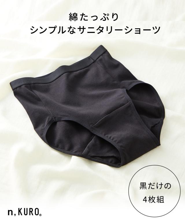 [keyword] レディース 下着 ランジェリー インナー 大きいサイズ ぽっちゃり ふくよか プラスサイズ ラージ ファッション 標準サイズ 普通サイズ ゆったりサイズ ハイウエスト すっぽり 深め 深ばき丈 深履き丈 羽付きナプキン対応 羽根付き ウイング対応 生理用 サニタリー 夜用 ナイト用 多い日用 昼用 ノンレース レースなし 響きにくい ひびきにくい 響かない ひびかない シームレス ストレッチ 伸びる 綿混 コットン混 綿素材 綿 コットン お買い得セット まとめ買い セット お得 春 夏 秋 冬 [comment] サニタリーショーツが、昼用・夜用各2枚でお買い得!シンプルで使いやすいデザインで、黒だからうっかり汚れても安心。綿たっぷりの綿混ストレッチで肌ざわりよくフィットします。※商品の色移りを防止するために個包装を行っている場合がございます。個包装はプラスティック削減のため一部の色のみに使用しています。
