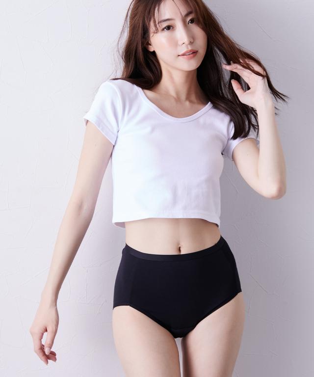 綿混ストレッチシンプル深ばきサニタリーショーツ昼用2枚夜用2枚4枚組(羽付ナプキン対応)