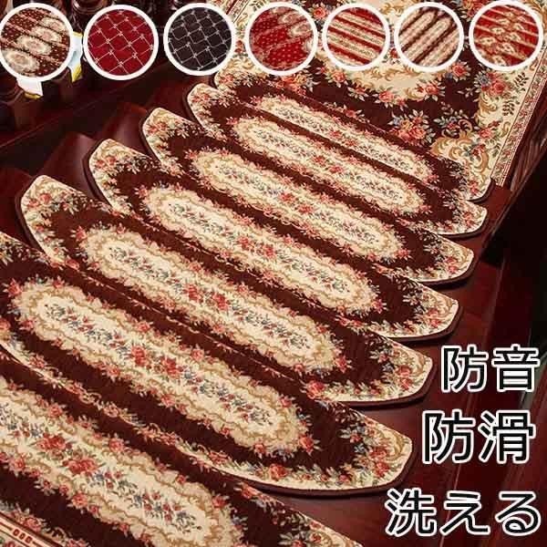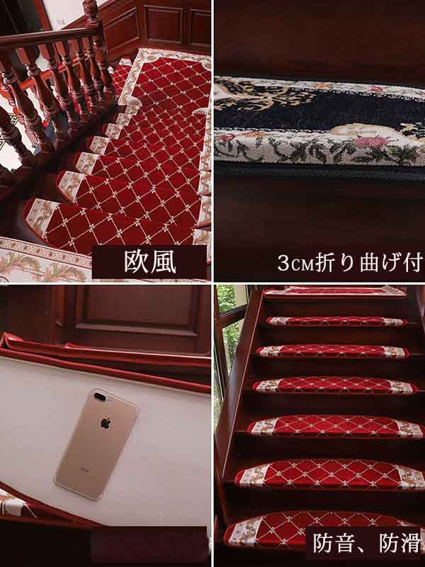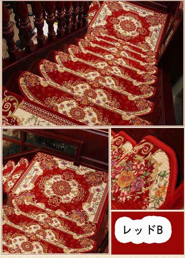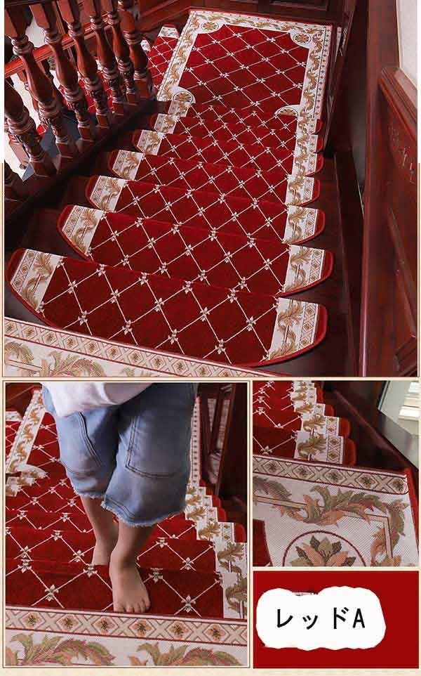 8色 階段マット 滑り止め おしゃれ 折り曲げ付 エスニック 欧風 吸着階段マット 足冷え 赤 半円形 厚さ8mm 洗える おすすめ 滑り止めマットズレない キズ防止 階段敷物 廊下敷き エレガント 24cmx65cm 24cmx100cm ja127f4f4s3