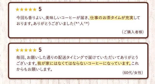 - いつもありがとうございます。 好みのコーヒーで、満足です