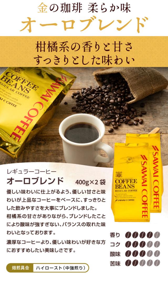| 内容量 | ・オーロブレンド(ハイロースト) 400g×2袋 ・プラタブレンド(ハイロースト) 400g×2袋 |