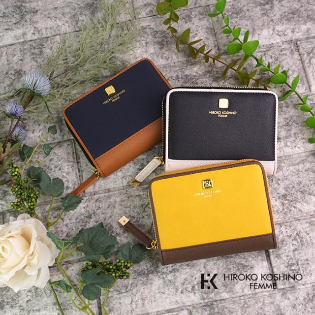 ラウンドファスナー二つ折り財布 折りたたみ財布 ファスナー ジッパー レディース 3色 上品 婦人財布 カジュアル ギフト 祝い プレゼント コシノヒロコ HIROKO KOSHINO サイフ 財布