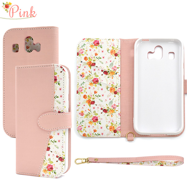 スマートフォンケース シンプルスマホ4用 手帳型 花柄 ハッピーブーケ スマホケース かわいい お洒落 携帯ケース 花 花模様 華やか 上品 装着簡単 クラシカル スマホカバー flower フラワー ガーリーカジュアル おしゃれ シニア向けスマホ お洒落