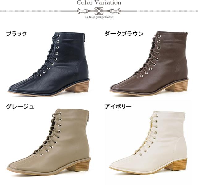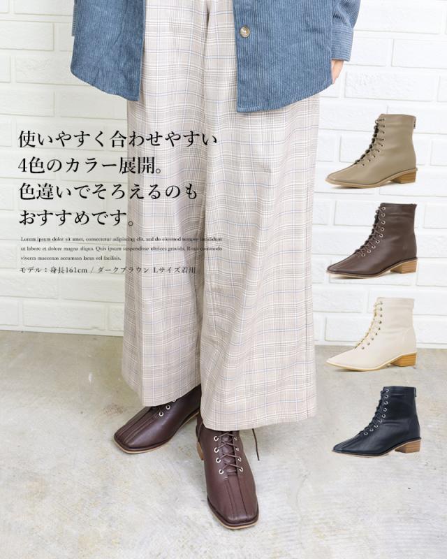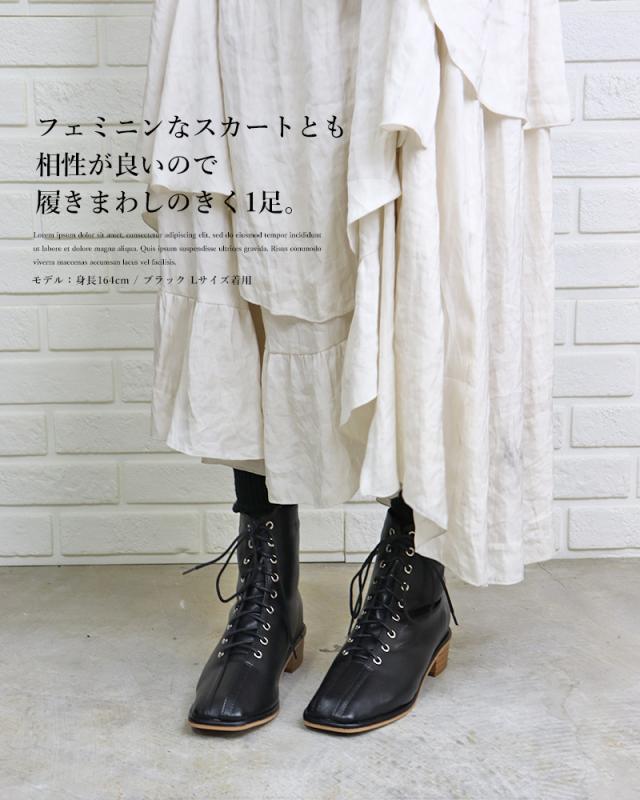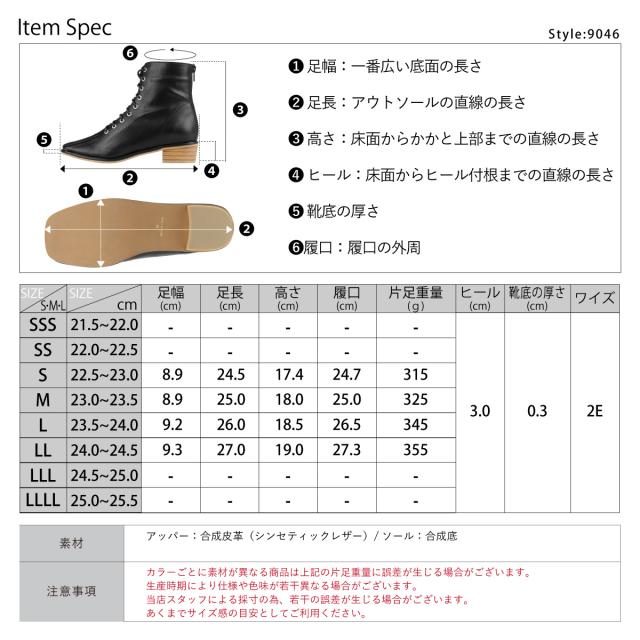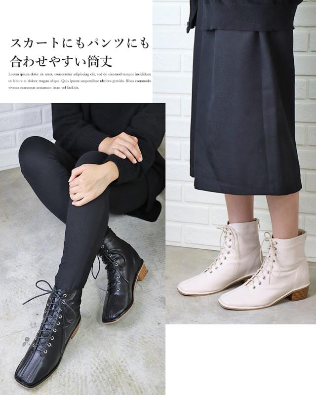 ブーツ レディース 3cmヒール No.9046 レースアップ 編み上げ スクエアトゥ バックジップ 黒 ブラック LiBERTYDOLL レースアップ スクエアトゥ 痛くない 2E レザー 合成皮革 太ヒール バックジップ