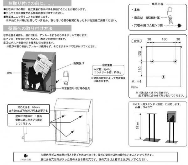 セトクラフト シルエットウォールポスト ドッグ SI-1505 壁掛け 郵便受け 新聞受け 投函口幅24cm×高さ3cm 南京錠付き