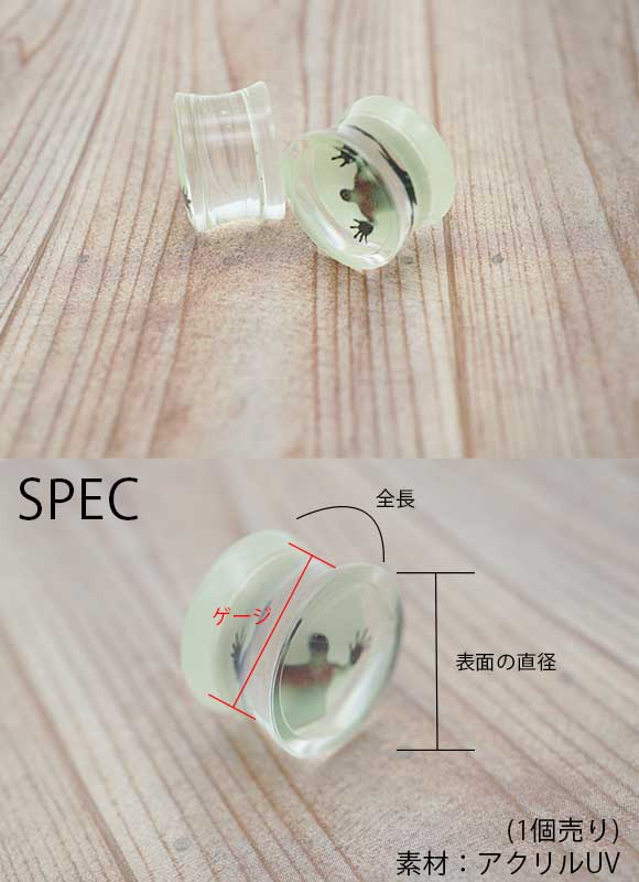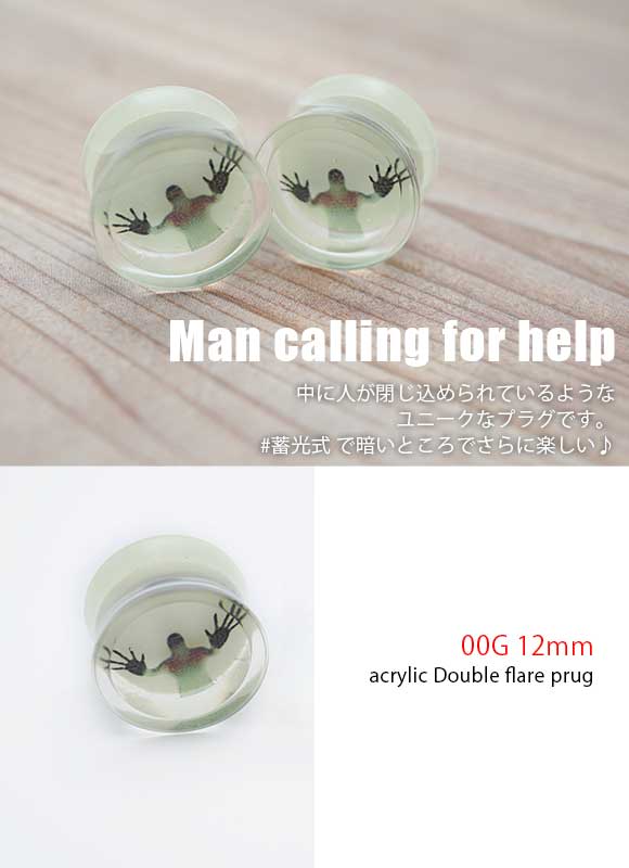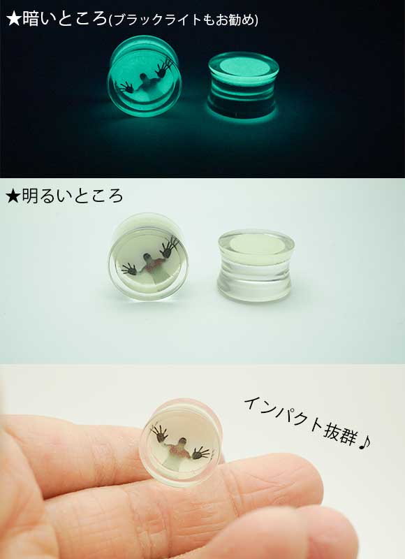 本日P2倍 00G 12mm ピアス ボディピアス 光る 透明ベース calling help プラグ ダブルフレアアイレット アクリルUV 蓄光式 拡張