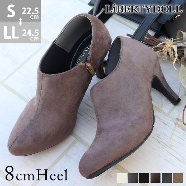 ブーツ レディース ショート ブーティ ショートブーツ 8cmヒール アーモンドトゥ ハイヒール 美脚 脚長効果 22.5cm〜24.5cm 黒 ブラック アイボリー LiBERTYDOLL リバティードール No.3614