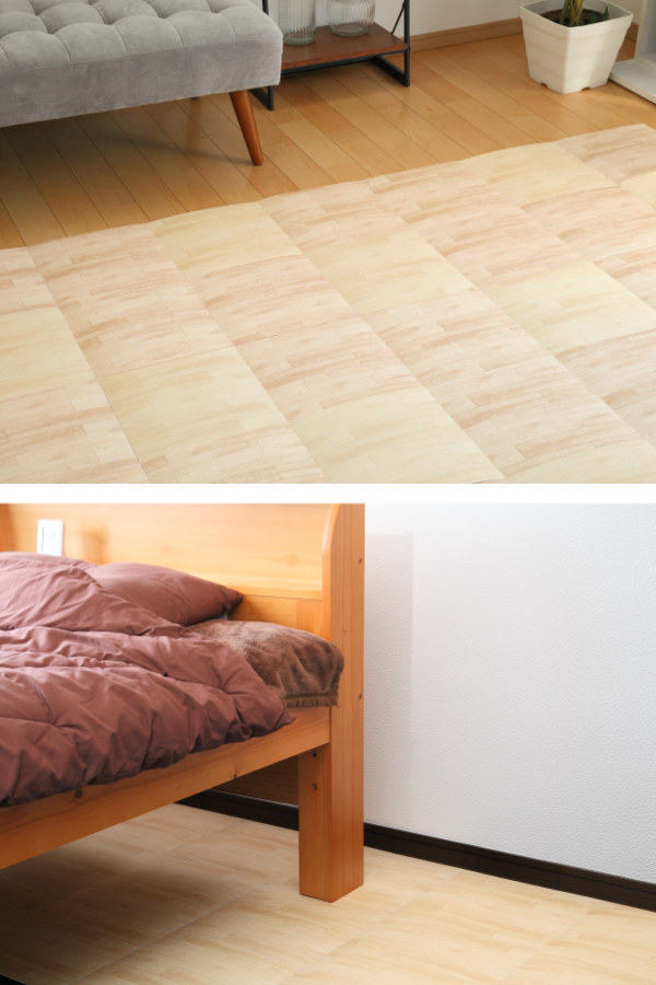 床に置くだけでマットの裏面がピタッと床に吸着します。ズレにくいのでお子様やご高齢者、ペットを飼っているご家庭でも滑らず安心です。また薄さが約2mmと段差が少ないので、つまずく心配もありません。