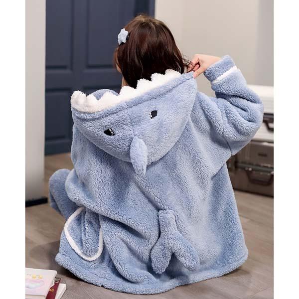 ルームウェア 寝巻き 寝間着 サメ柄 かわいい 萌え 暖かい ズボン付き 小柄 パジャマ 着心地よい レディース ゆったり 気持ちいい 癒し感 長袖パジャマ お揃い 前開き サンゴベルベット 冬 女の子 おしゃれ dw030zezes3