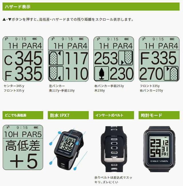 【正規販売店】EAGLE VISION イーグルビジョン WATCH5 ウォッチ5 ブラック 腕時計タイプ 高精度GPSゴルフナビ EV-019 BLACK 高低差表示 防水仕様 時計機能 朝日ゴルフ ev019 即納