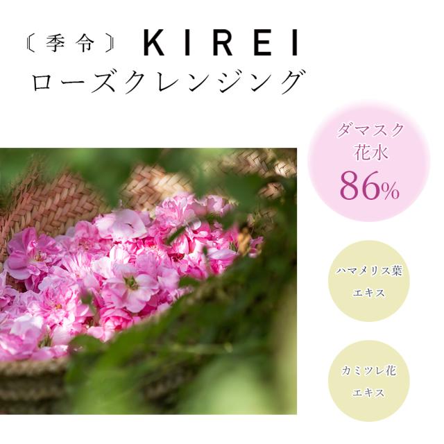 ■季令 KIREI ローズクレンジング 150g ダブル洗顔不要 マツエクにも使用できます ダマスクローズのフローラルウォーター(芳香蒸留水)で作られた 美容液のようなクレンジング メイク 毛穴の汚れ 古い角質 収れん 保湿 抗菌 細胞修復作用 デオドラント作用 キレイ ACTLAND