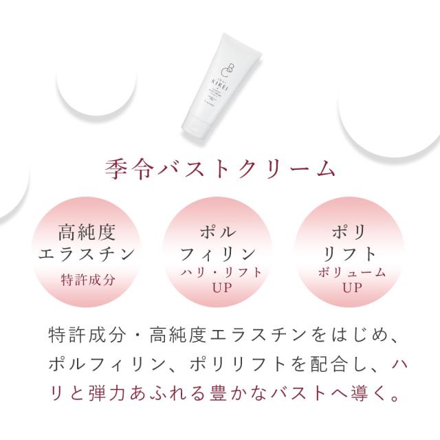 【2本セット】季令 KIREI バストクリーム 120g 高純度エラスチン配合 有効成分ボルフィリン( ハリ・リフトアップ ) ポリリフト( ボリュームアップ )も贅沢に配合 塗るだけの簡単ケア ハリと弾力あふれる豊かなバストに導きます 下垂 バストケア キレイ ACTLAND