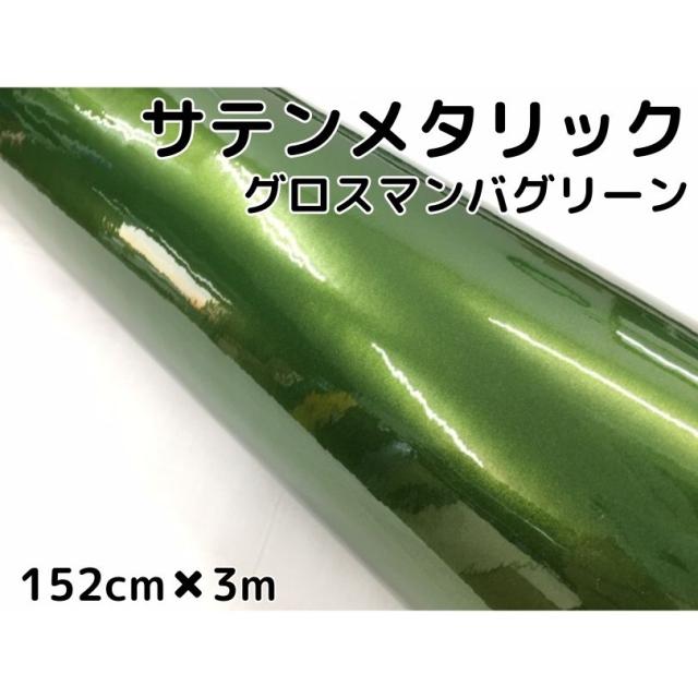 サテンメタリックグロス 152cm×3m 艶ありマンバグリーン カーラッピングシートフィルム 耐熱耐水曲面対応 裏溝保護フィルム付 ラッピングフィルム