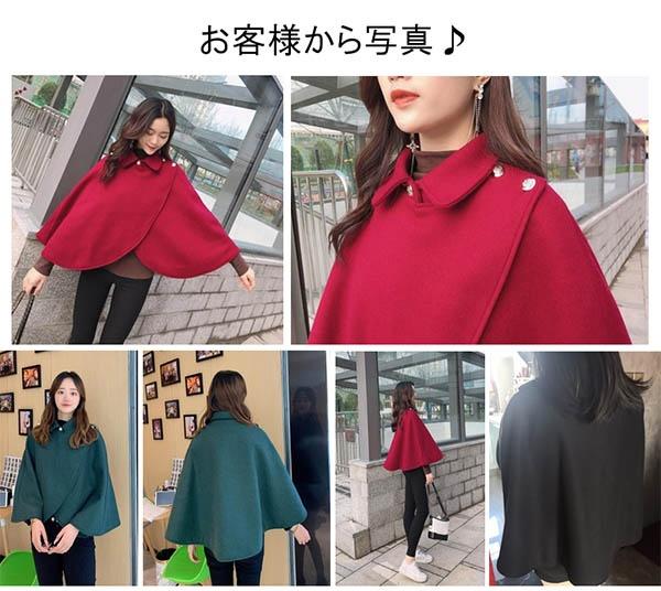 ケープコート マントコート ポンチョ コート レディース ポンチョコート アウター 大きめ ゆったり 大きいサイズ 韓国風 春 秋 冬服 防寒 体型カバー おしゃれ エレガント フェミニン 暖かい レッド ワインレッド ブラック グリーン M/L/XL/2XL dg206t2t2s3