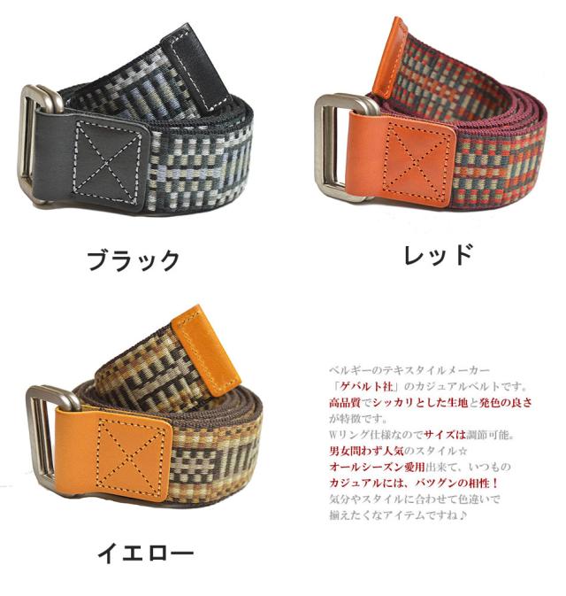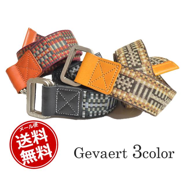 日本製【GEVAERT/ゲバルト】デジック Wリングベルト ベルギーベルト Wリング 布ベルト 布×栃木レザー(本革)織物生地 模様 柄ベルト ベルト垂らし メンズ レディース メール便送料無料※代引き除く