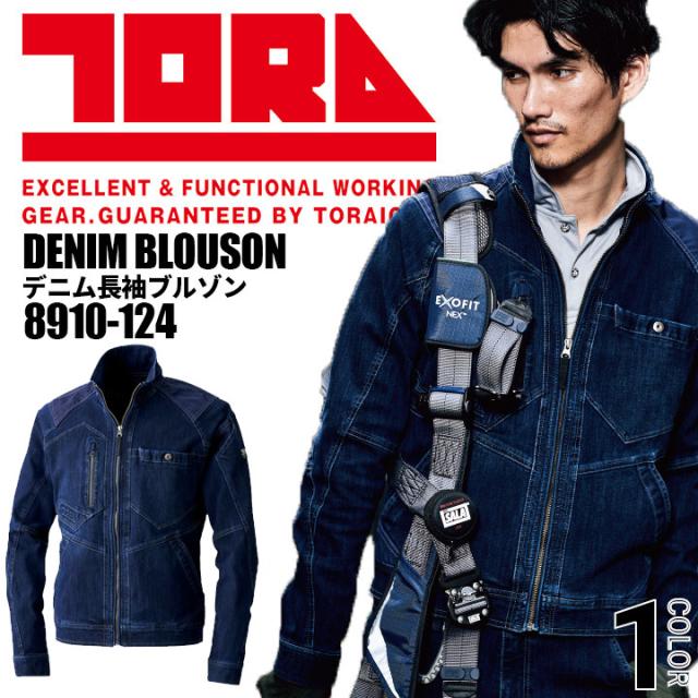 寅壱 作業服 デニム 長袖ブルゾン 8910-124 オールシーズン 8910シリーズ ジャケット ジャンパー 作業服 作業着 トライチ
