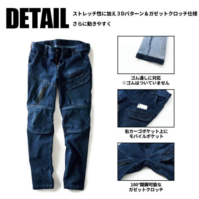 寅壱 デニム カーゴパンツ 8910-219 ズボン オールシーズン 8910シリーズ 作業服 作業着 トライチ ストレッチ