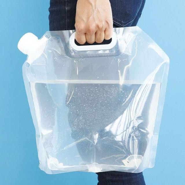 注ぎ口付の便利な給水袋。コンパクトに収納でき、使用時には自立する。