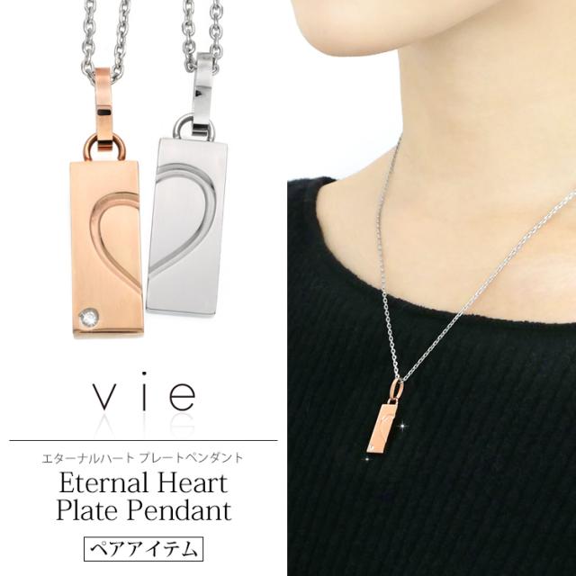 ペアネックレス2本セット ステンレスネックレス vie エターナルハートプレートペンダント ネックレスチェーン付 316L 誕生日 記念日 アクセサリー 彼女 女性