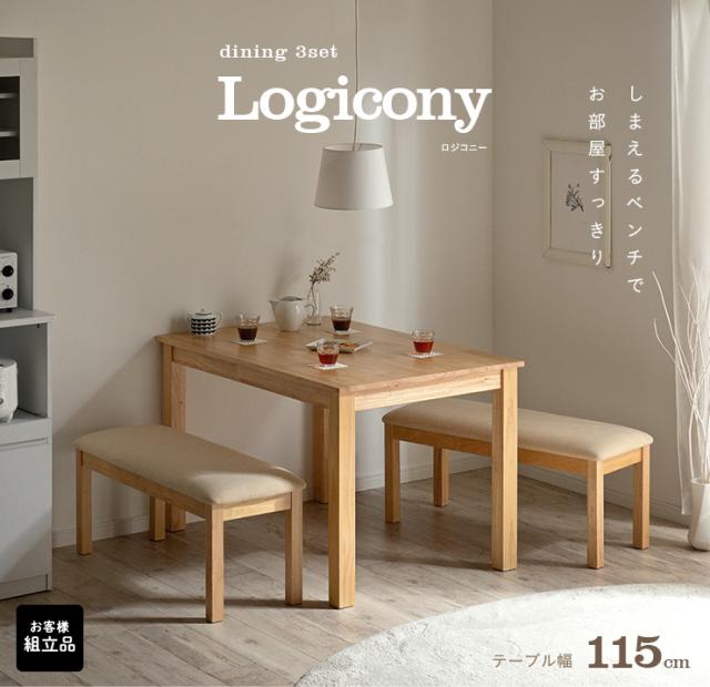 ダイニング3点セット Logicony(ロジコニー) 幅115cm 2色対応 ダイニングセット ダイニングテーブルセット ダイニングテーブル ダイニングベンチ テーブル ベンチ ナチュラル 木製