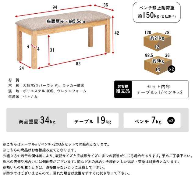 ベンチ:W94 x D36 x H42cm