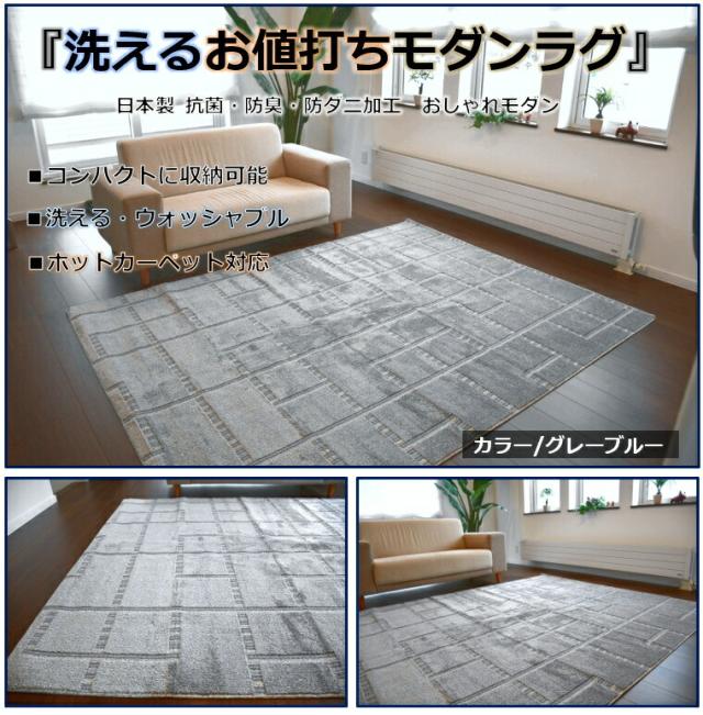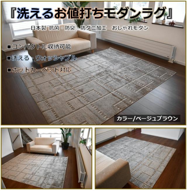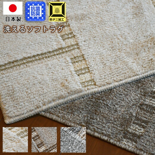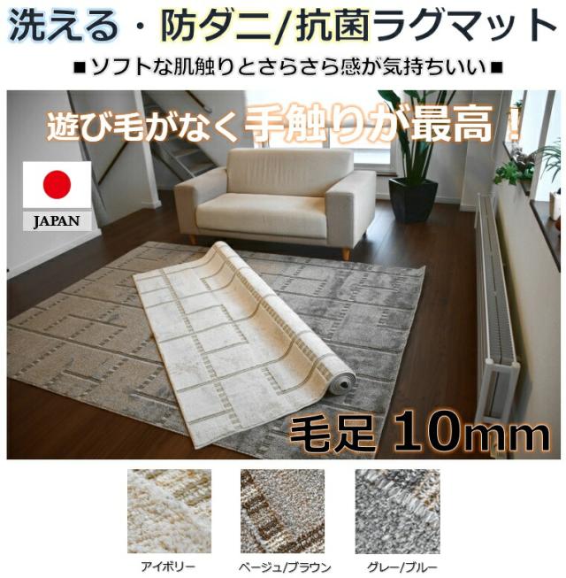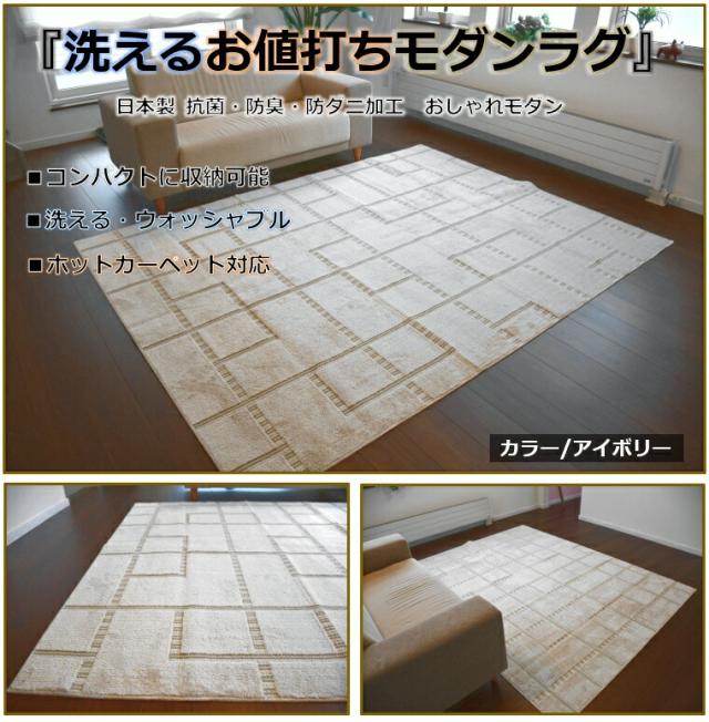 国産 洗える 抗菌 防ダニ 防臭 モダンラグ 【T-サンテ】 約2畳 185×185cm